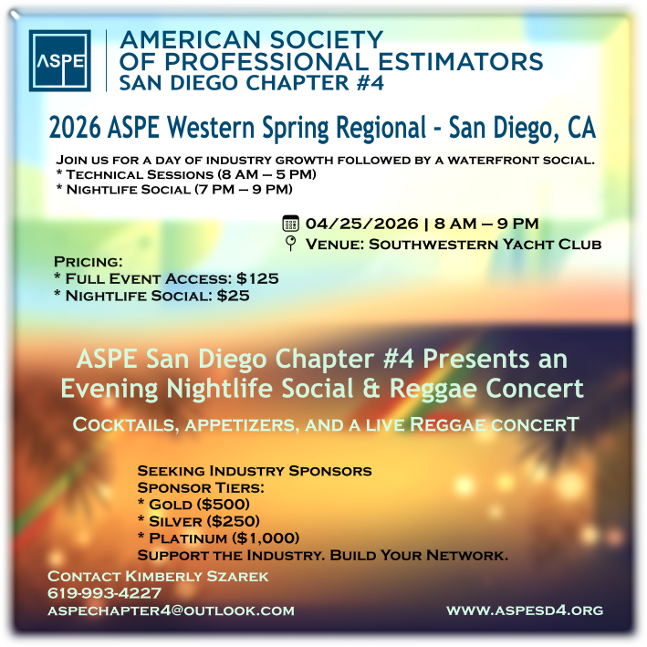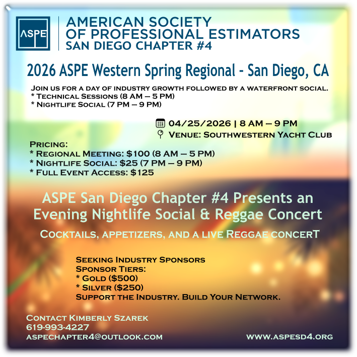 ASPE San Diego Chapter 4 offers services to San Diego area construction estimators to promote education,